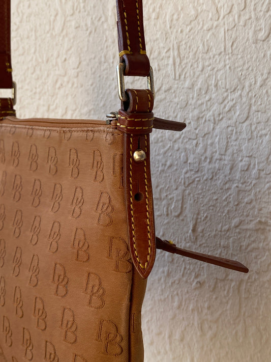 حقيبة كروس بودي بشعار مونوجرام بني من دوني آند بورك مع تشطيب من الجلد