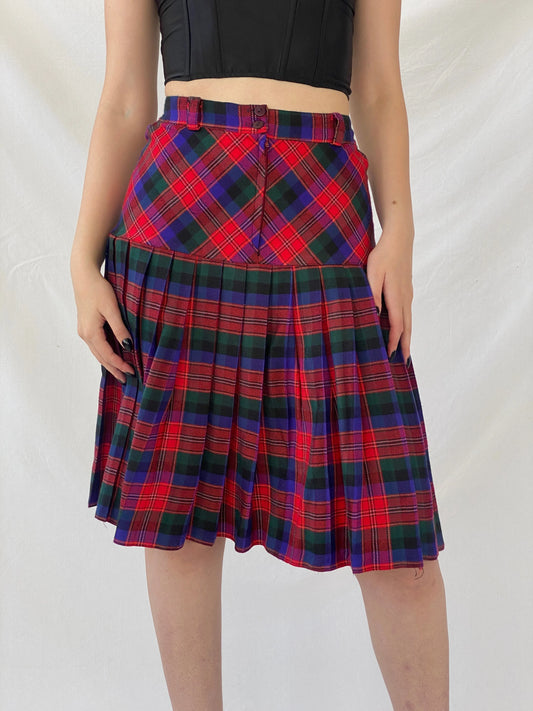 تنورة متوسطة الطول بأزرار أمامية منقوشة بنمط الترتان الأحمر العتيق من سكارليت - مقاس M
