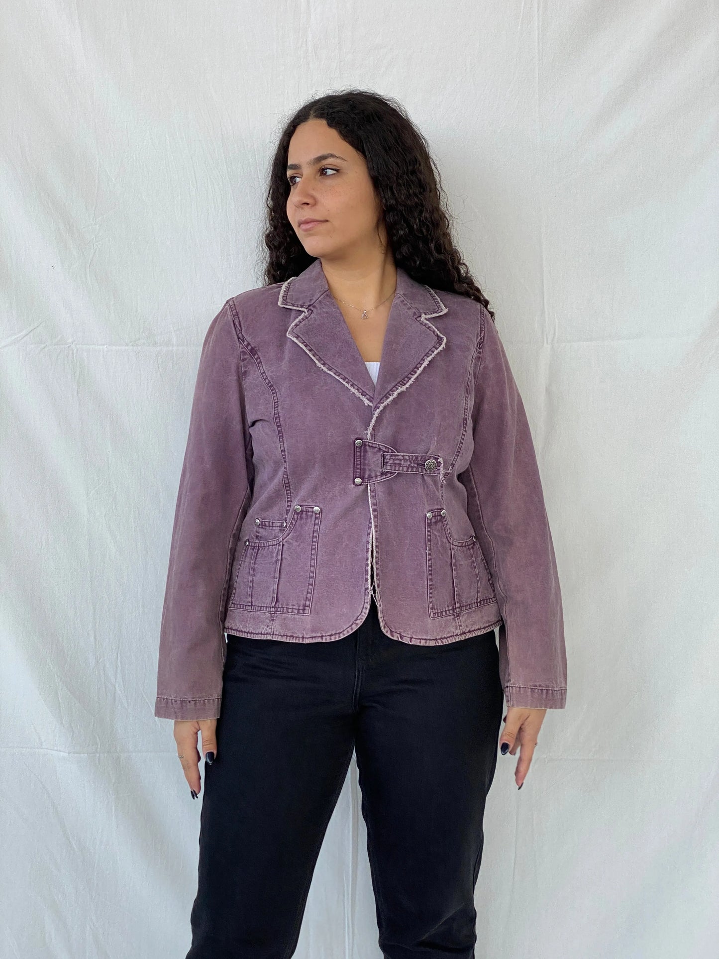 سترة بنفسجية فيثفول عتيقة الطراز 00s بتأثير دنيم - L
