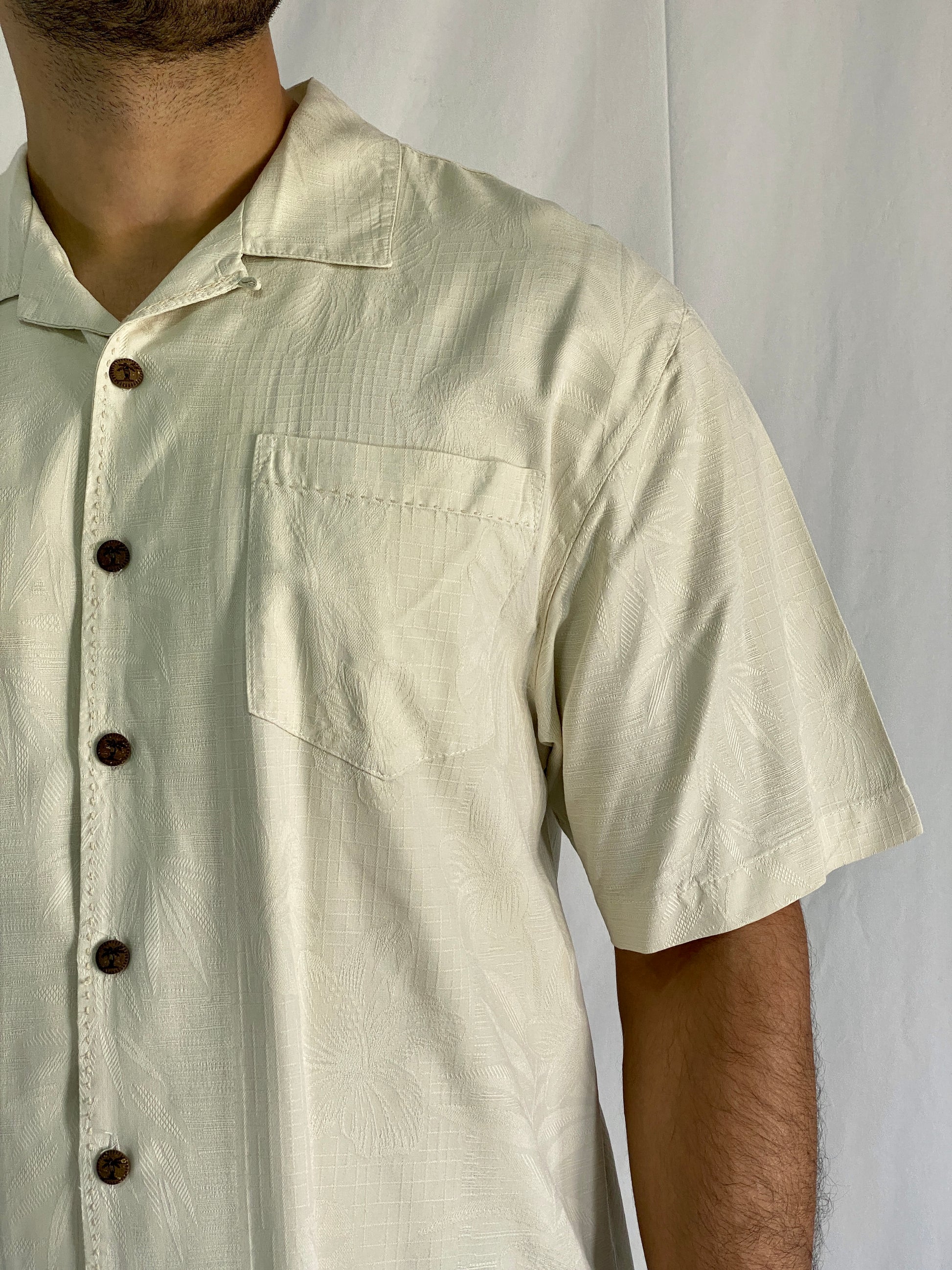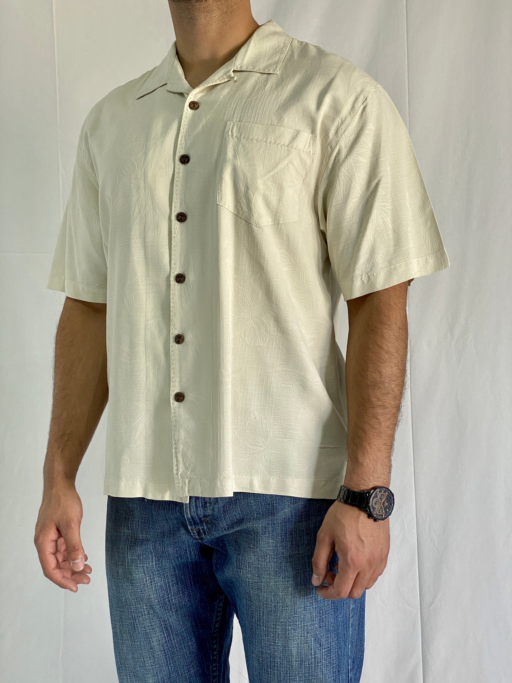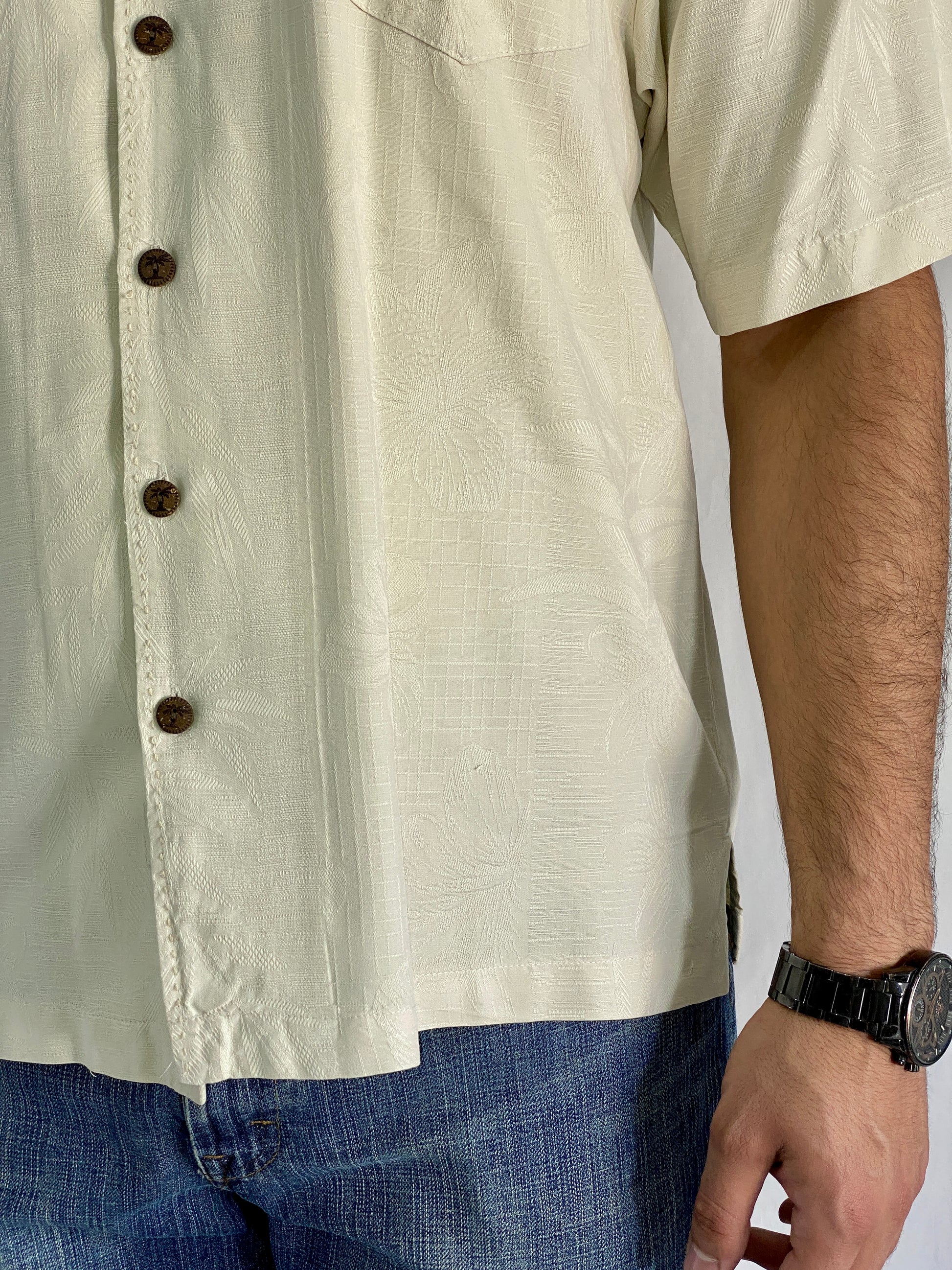 قميص بكم قصير رجالي هاواي من بادي باي سيلك - لون كريمي - مقاس L