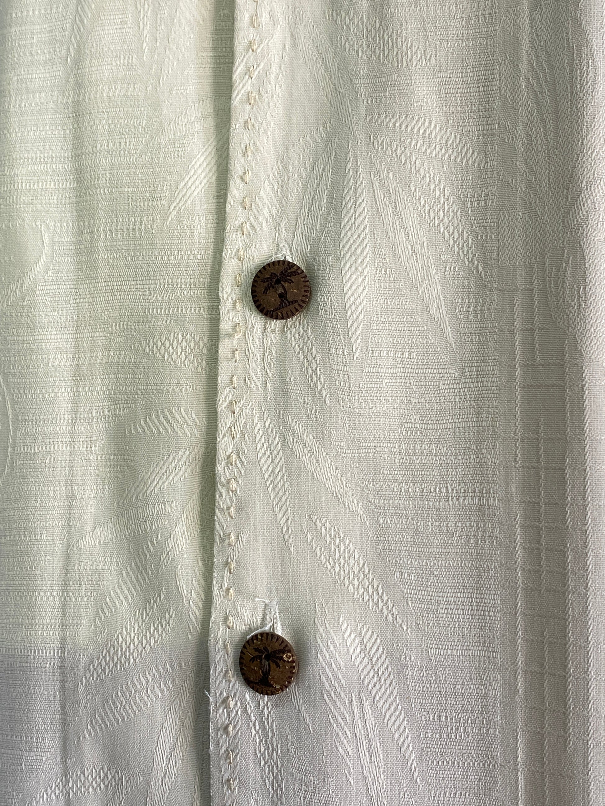 ارتقِ بخزانتك مع هذا القميص الحريري الخالد من Boundary Bay. مصنوع من حرير نقي 100%، يوفر إحساسًا ناعمًا وفاخرًا وقابلًا للتنفس، مثالي للمناسبات في الطقس الدافئ. القاعدة الكريمية مزينة بنمط استوائي منسوج بلون متناسق ومزينة بأزرار جوز الهند المحفورة على شكل نخلة لمظهر راقٍ مستوحى من الجزيرة.