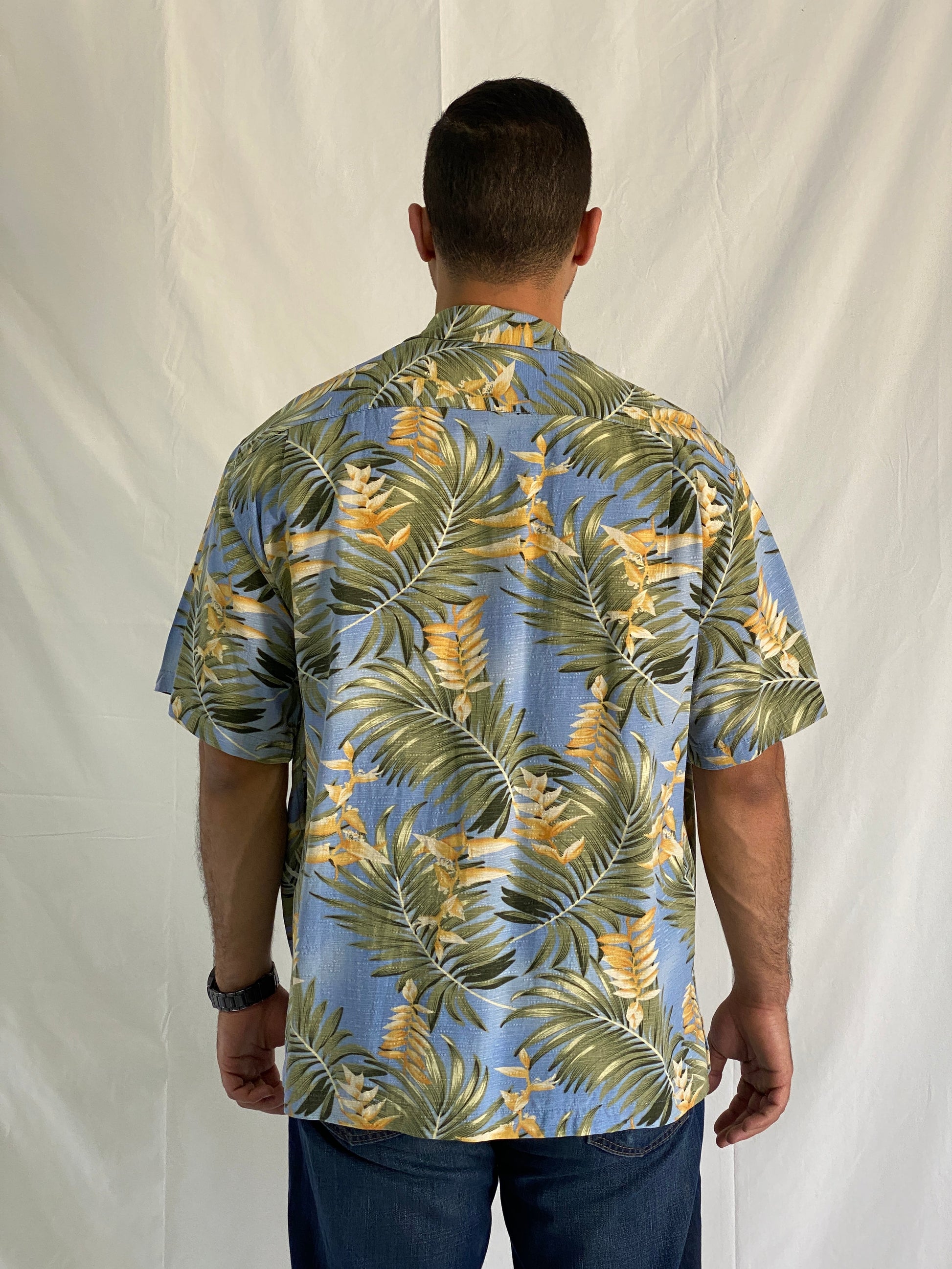 قميص حرير رجالي بأوراق نخيل استوائية باللون الأزرق الكاريبي هاواي - XL