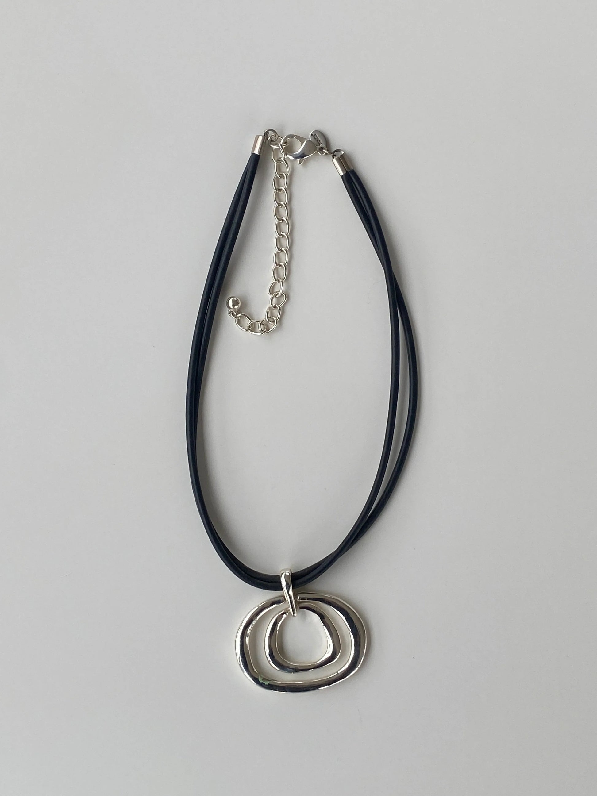 يتميز عقد تشوكس هذا بقلادة حلقات فضية اللون على طوق جلدي، حيث تنزلق الحلقات المزدوجة على خيط جلدي مزدوج لابتكار هذا العقد الرائع. نسق هذا العقد المفضل بقلادة الحلقات الفضية مع مجوهرات تشوكس الأخرى.