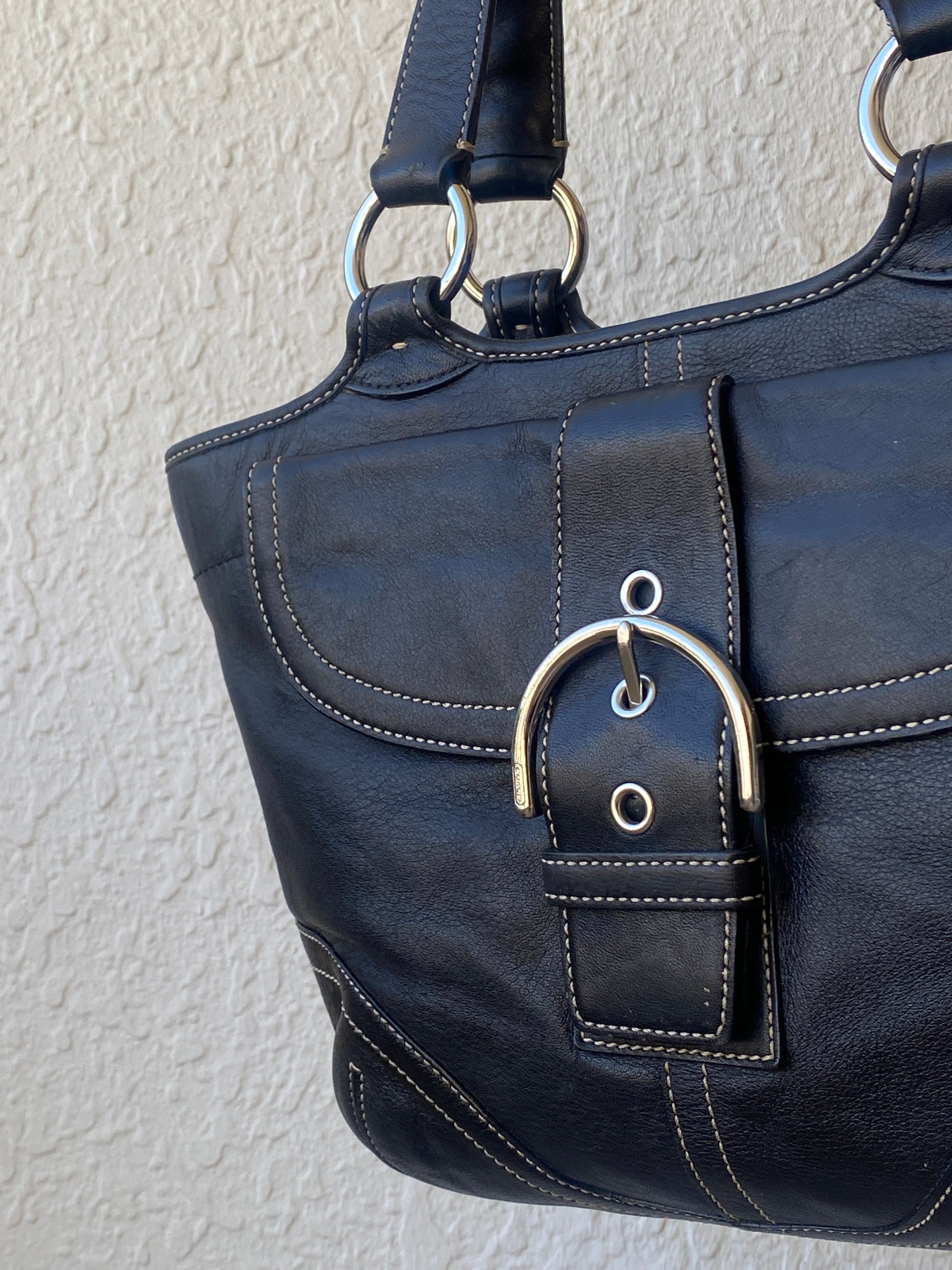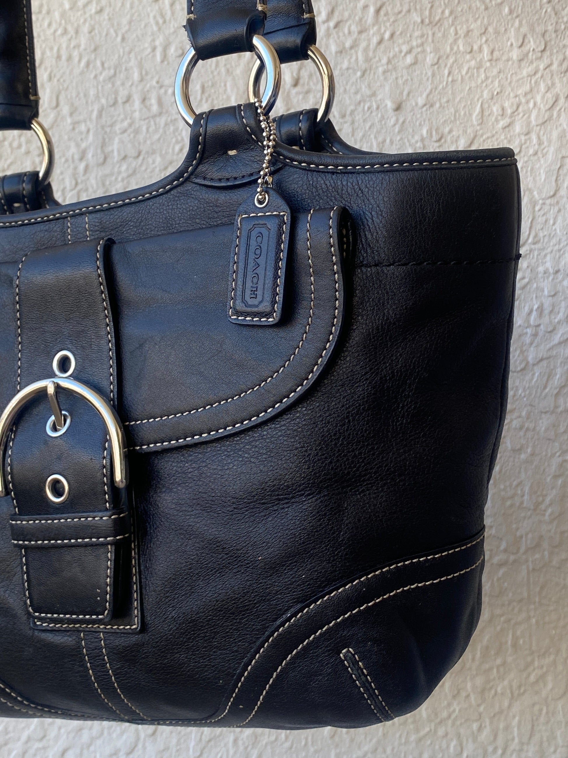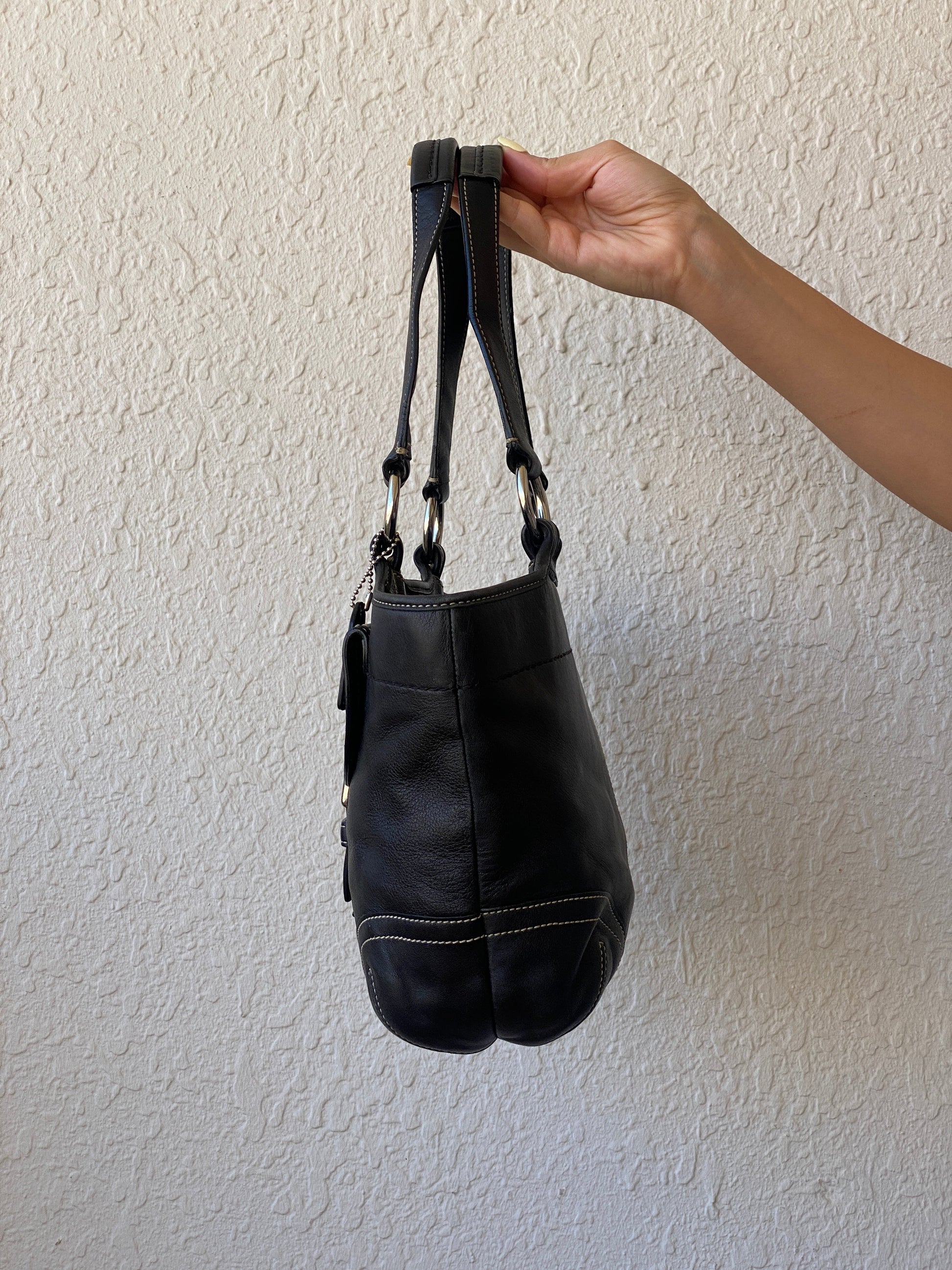 حقيبة توت من الجلد من Coach، حقيبة بحلقة من Coach، Coach NC043-9637، حقيبة Coach عتيقة، حقيبة كتف جلدية سوداء، حقيبة يد أصلية من Coach