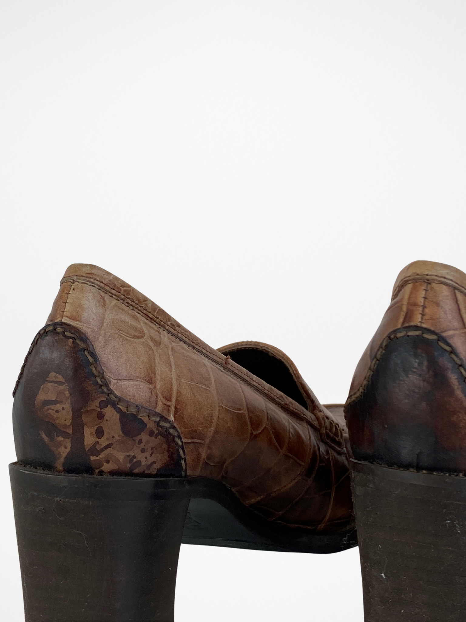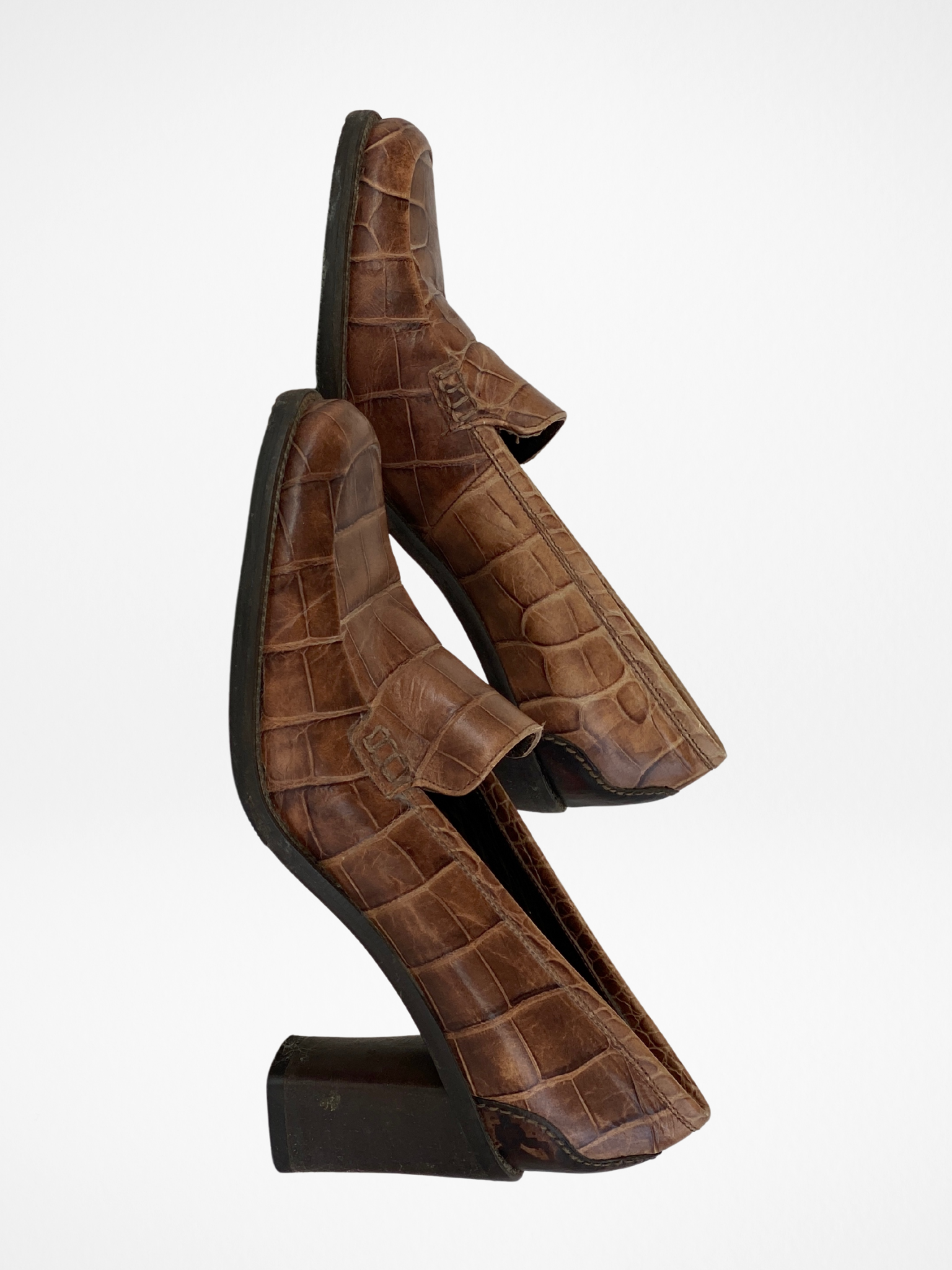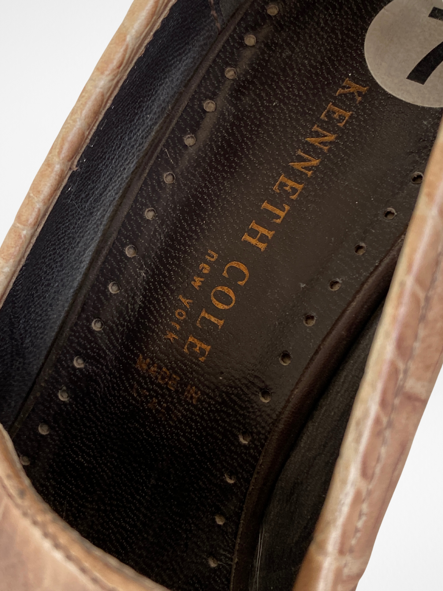 أحذية لوفر بني بكعب من الجلد الأصلي بنقشة تمساح، صنع في إيطاليا، كينيث كول عتيق - المقاس 37.5EU