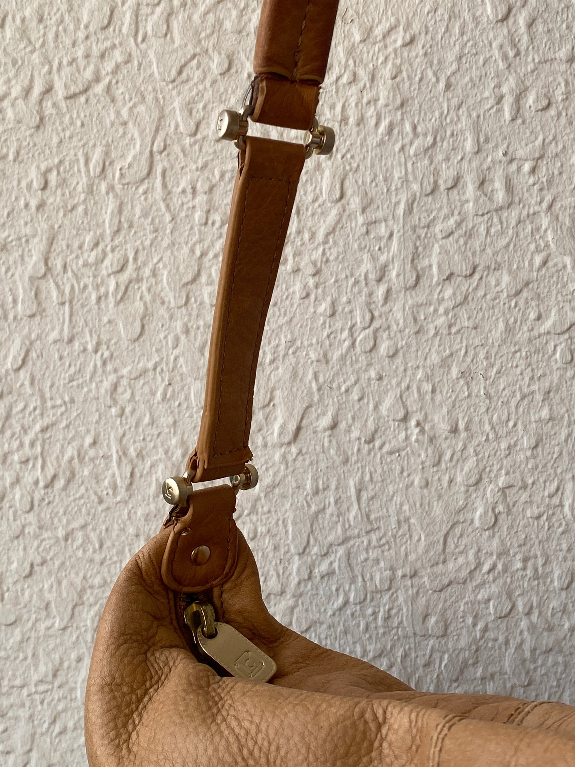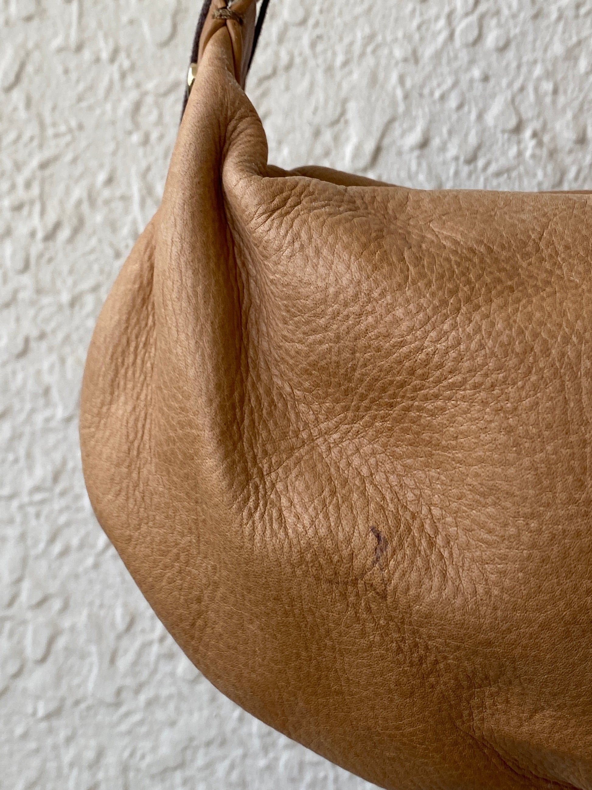 حقيبة كتف من الجلد الطبيعي ليز كلايبورن، حقيبة هوبو صغيرة باللون البني الفاتح