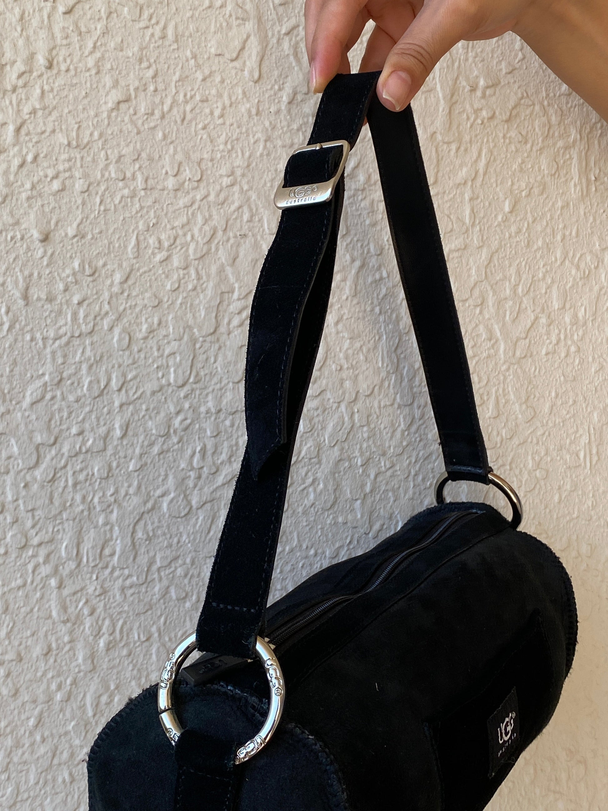 حقيبة كتف برميل من الجلد المدبوغ الأسود من UGG أستراليا، محشوة بفرو شيرلينغ