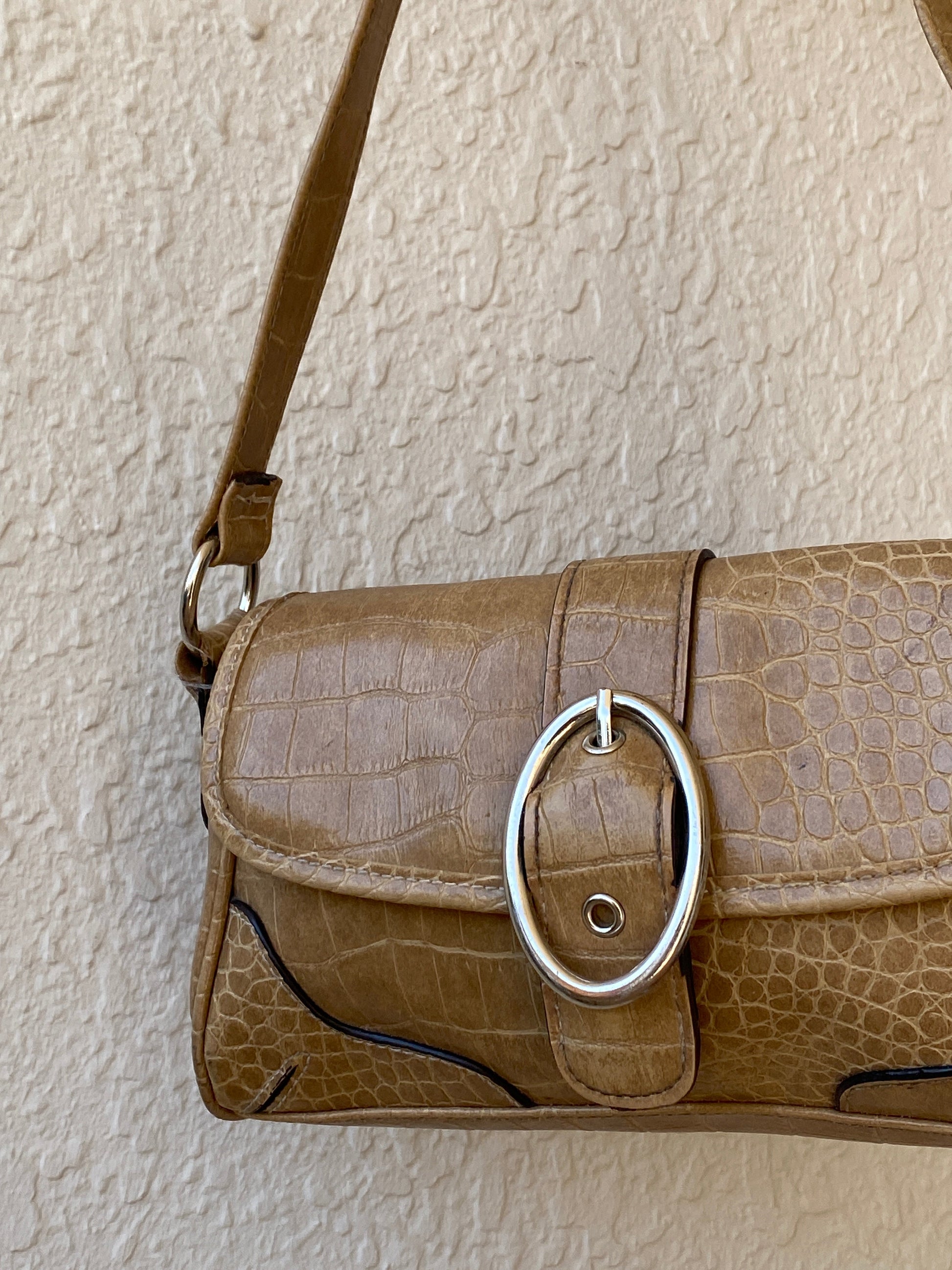 حقيبة كتف بنقشة جلد التمساح البيج العتيقة - حقيبة يد باغيت بحلقة Y2K