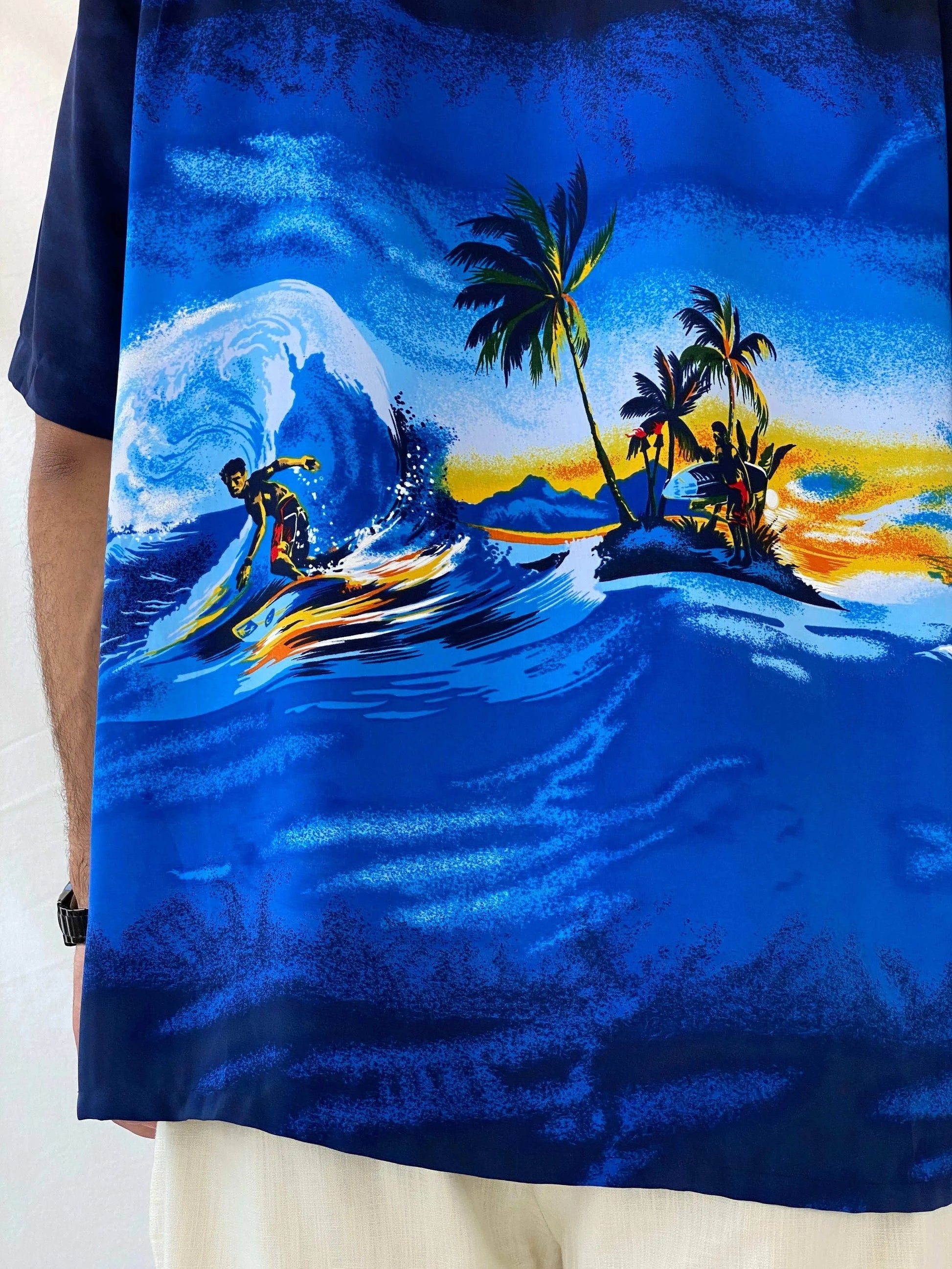 قميص كينينغتون هاواي أزرق نصف كم - XL عتيق