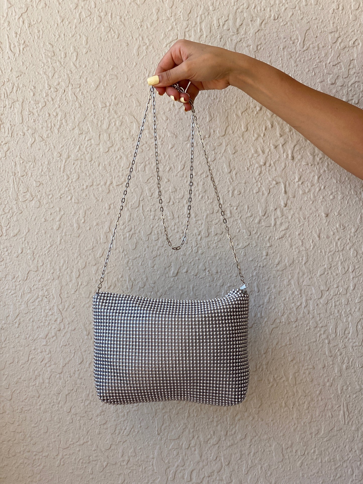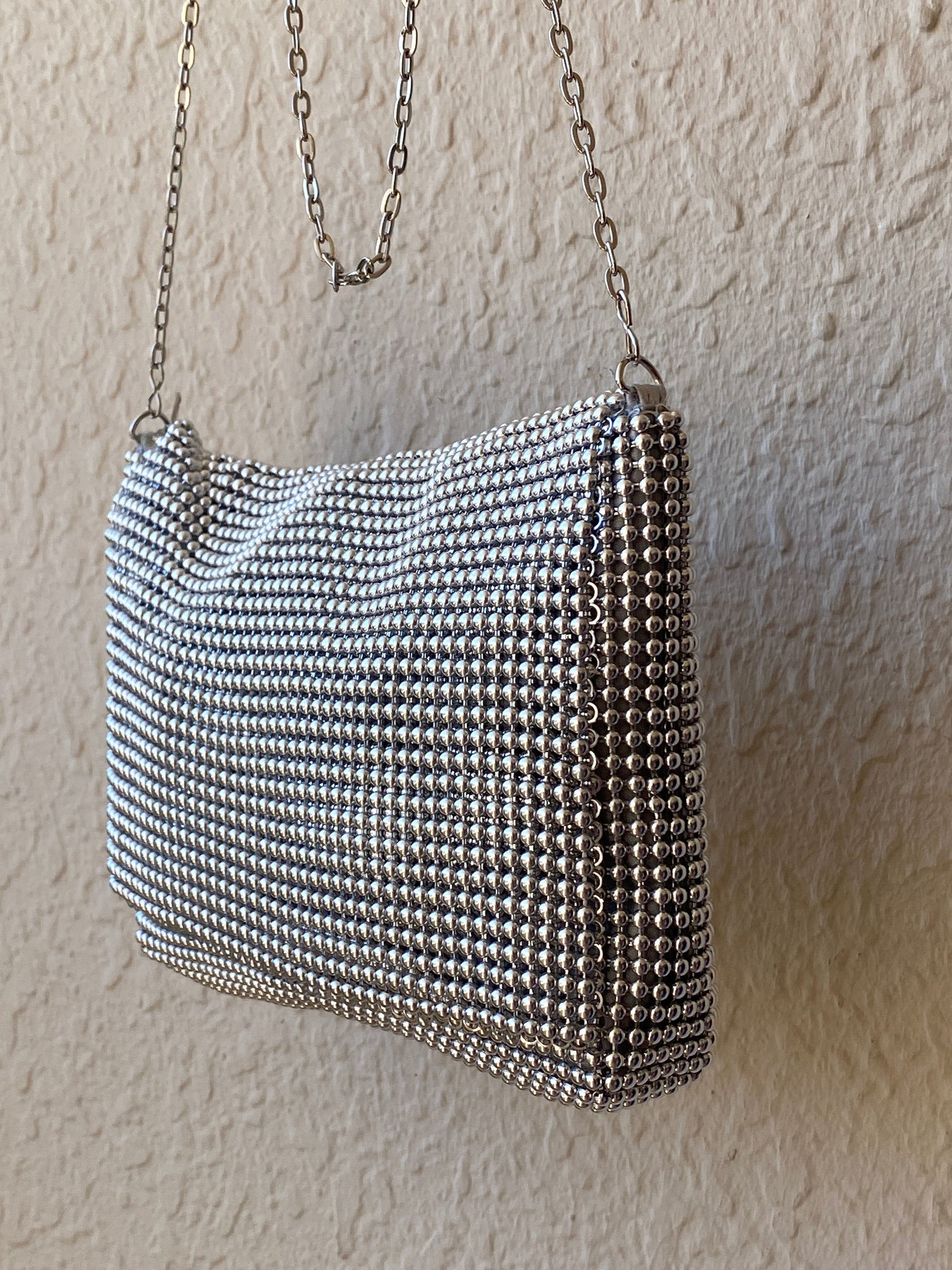 حقيبة سهرة فضية من شبكة لا ريغال عتيقة مع حزام سلسلة – تألق Y2K