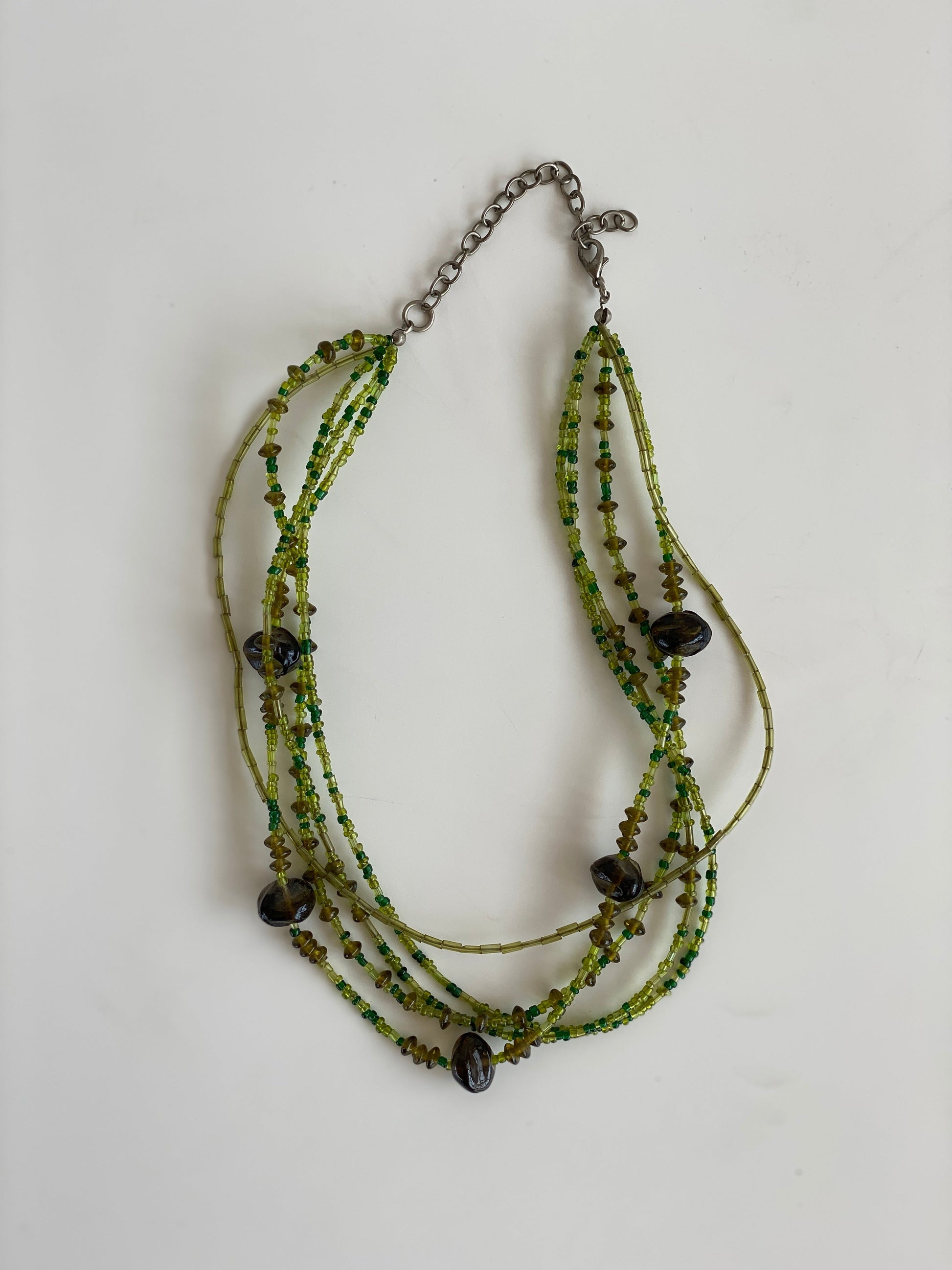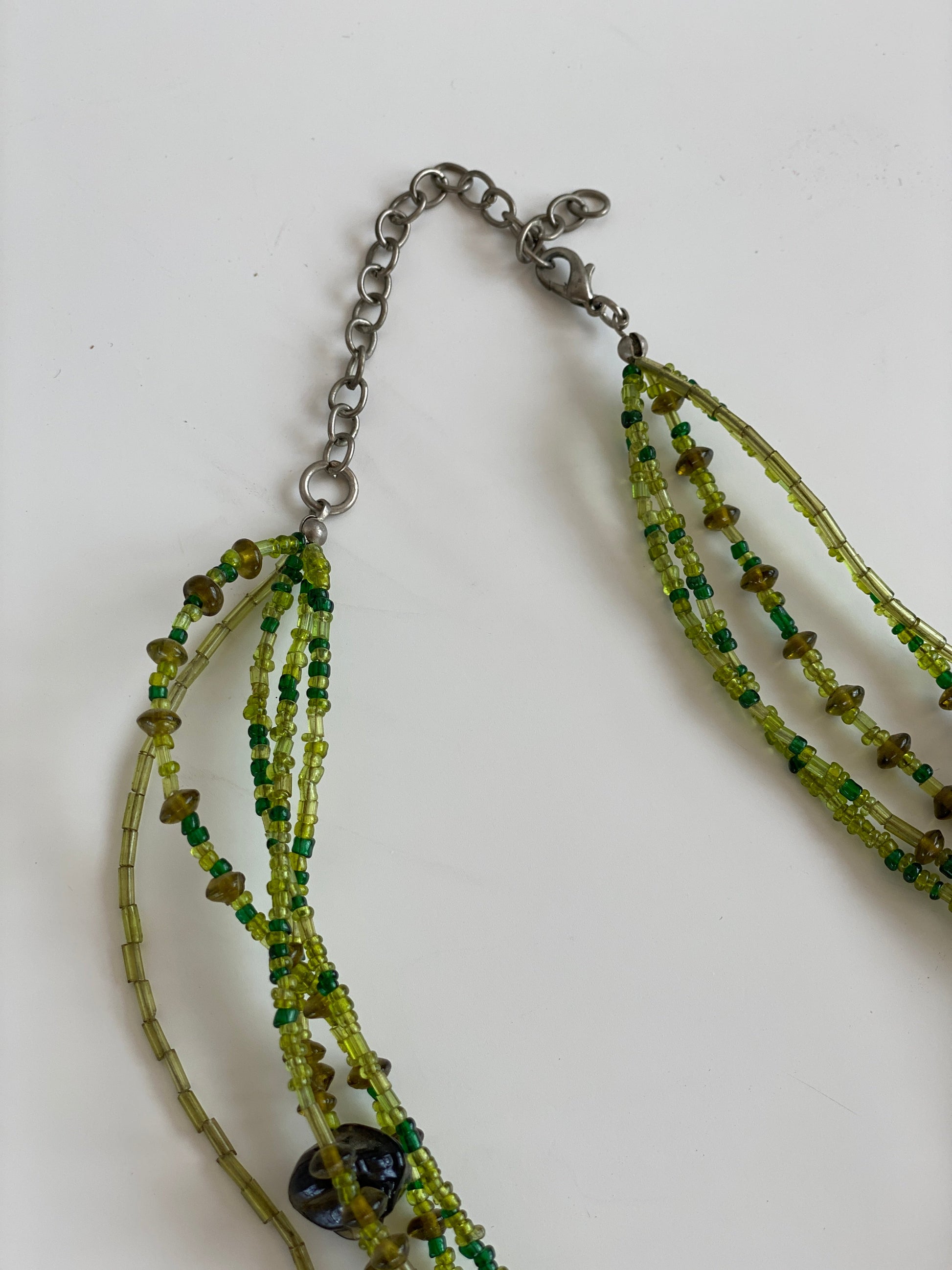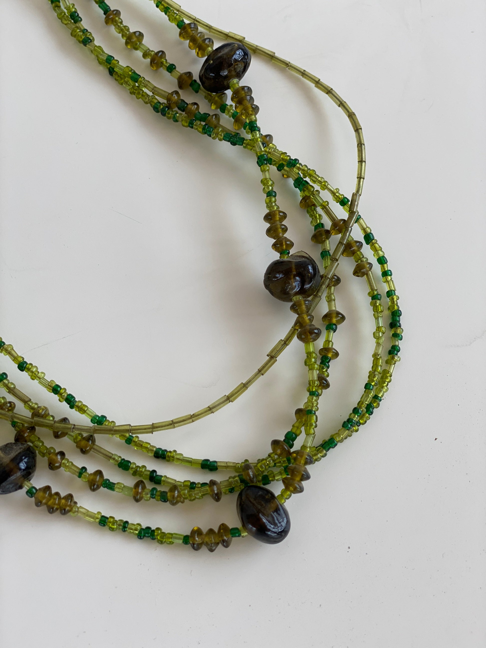 عقد تشوكر عتيق متعدد الخيوط من خرز الزجاج الأخضر – مجوهرات بيان بوهو متعددة الطبقات