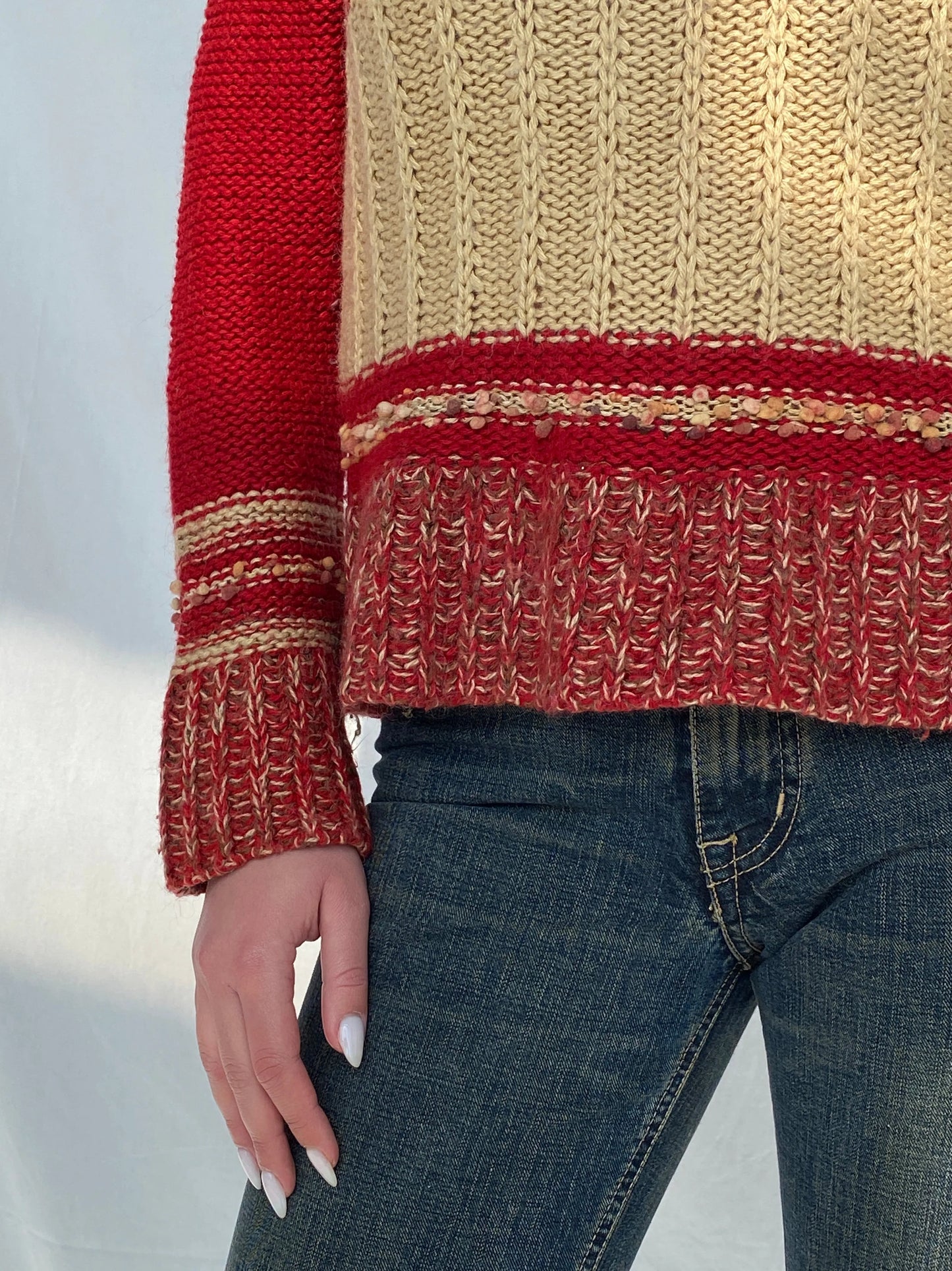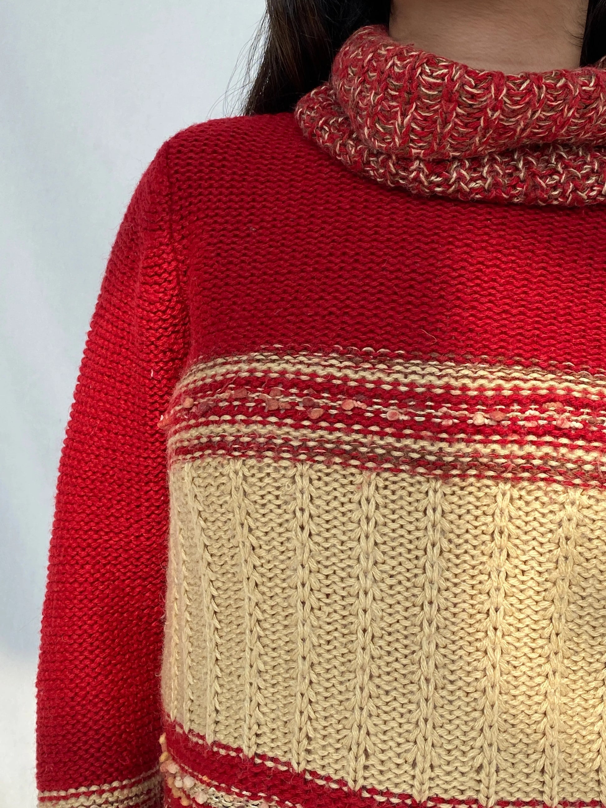سترة Vintage NEW MOON محبوكة بياقة دائرية من مزيج الصوف والموهير باللونين الأحمر والبيج - M