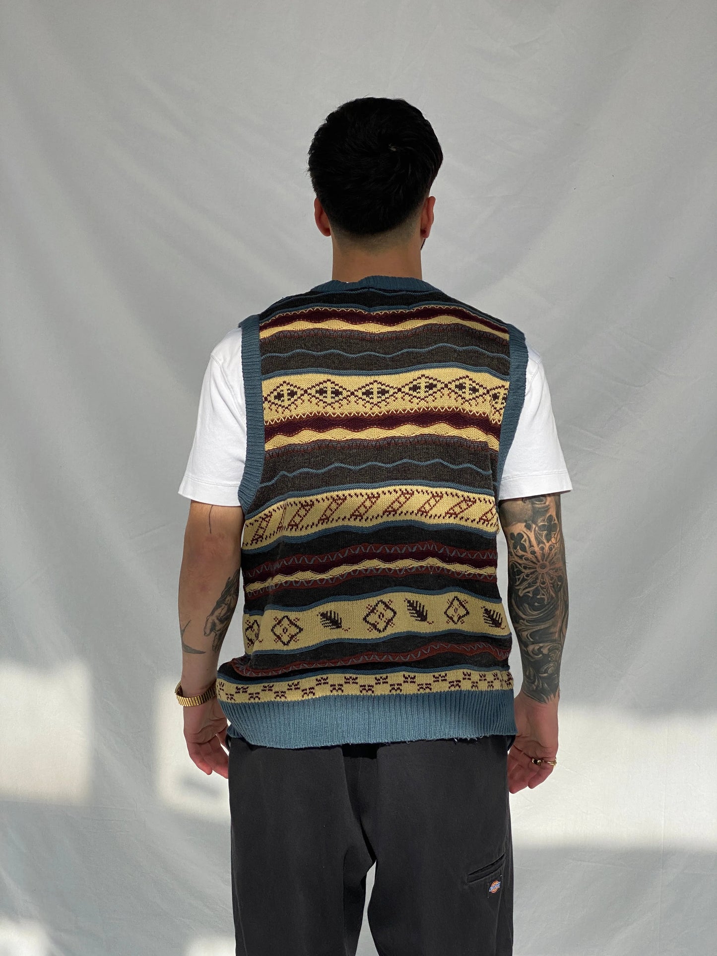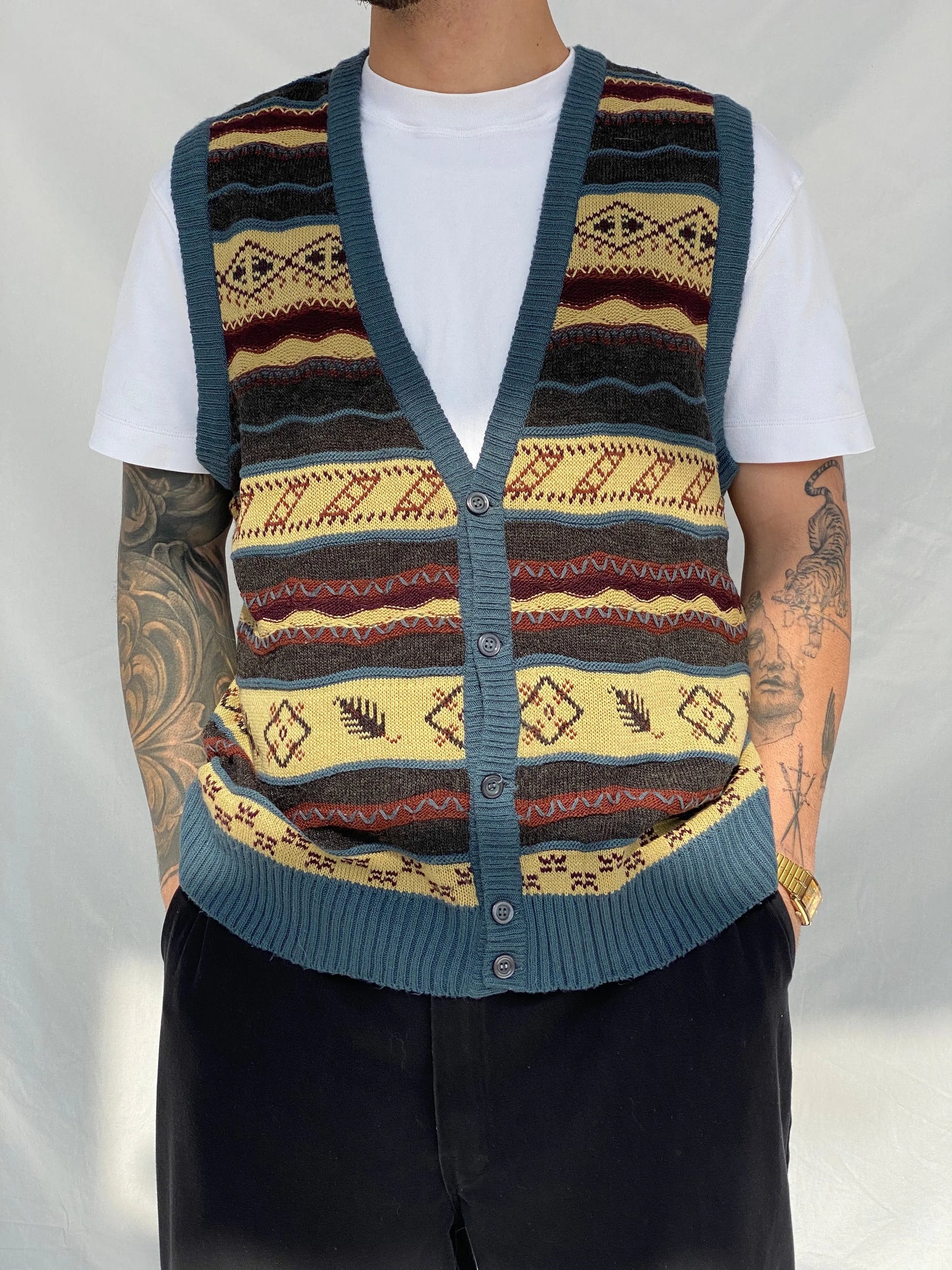 ارتقِ بأسلوبك الشتوي مع سترة الصوف المختلطة الرجالية من Vintage Paolo Conti. مصممة للطبقات، تضيف هذه السترة لمسة من السحر الحنين لأي زي. ابق دافئًا وأنيقًا مع هذه القطعة من التسعينيات.