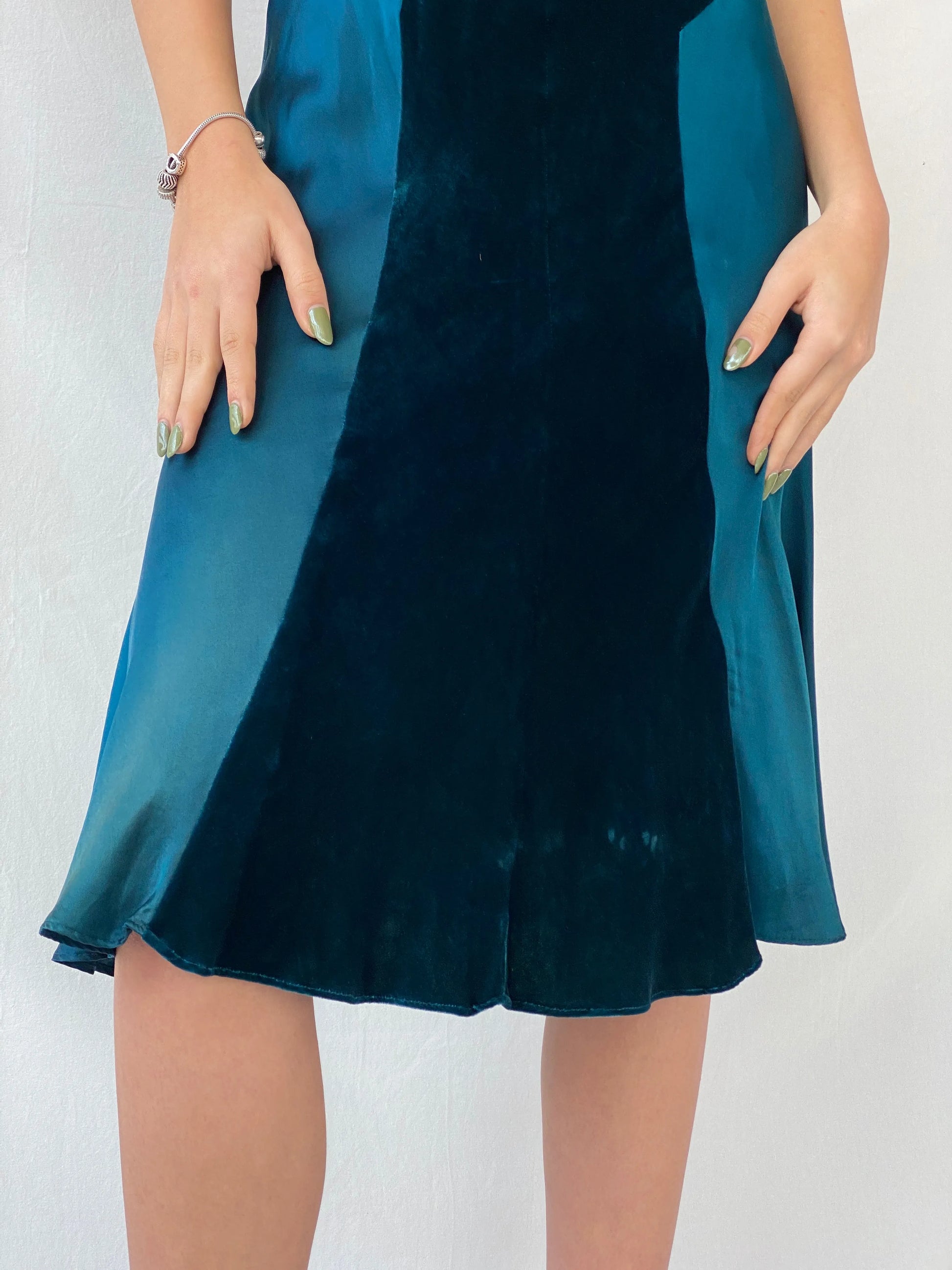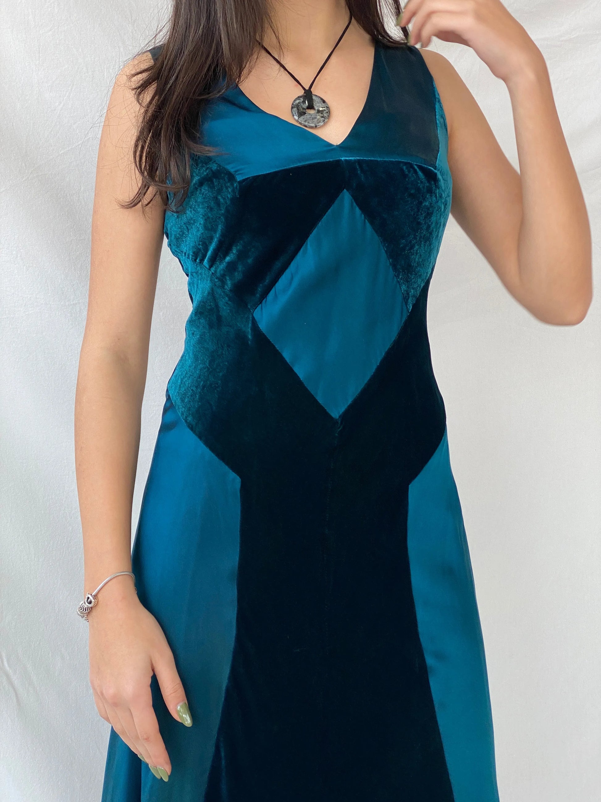 فستان ميدي بدون أكمام من فينتاج فيز إيت غرين مزيج من الحرير والمخمل - مقاس M