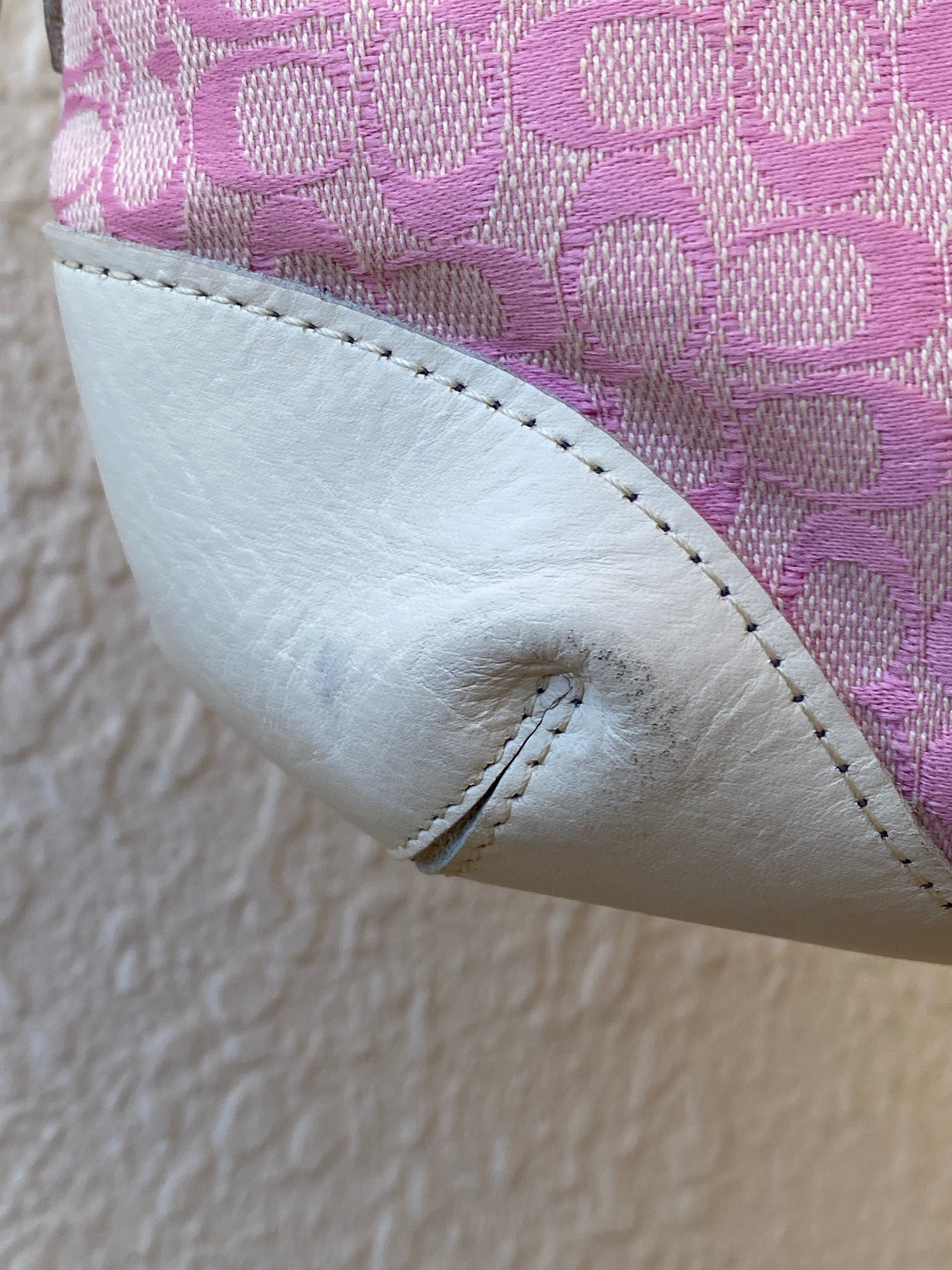 حقيبة كتف صغيرة منسوجة بتوقيع كوتش وردي عتيقة من فترة الألفية الثانية – رقم الطراز NT-4115