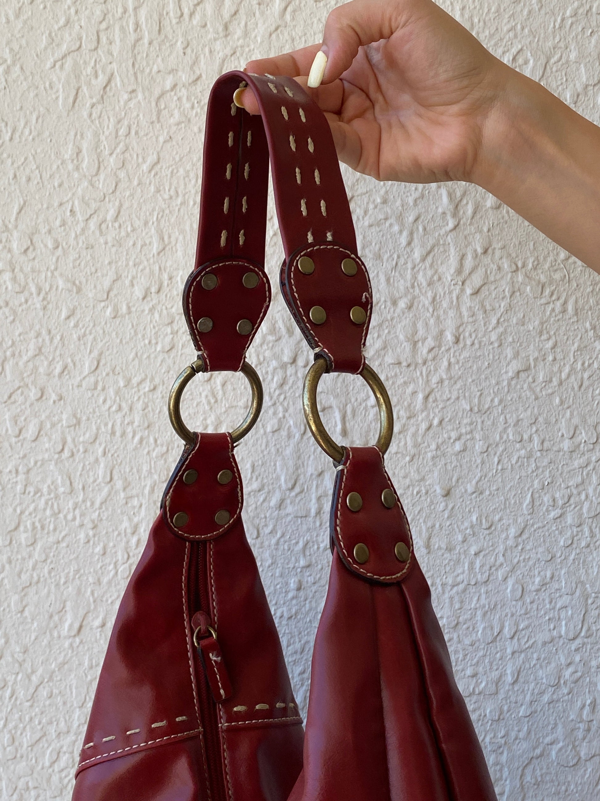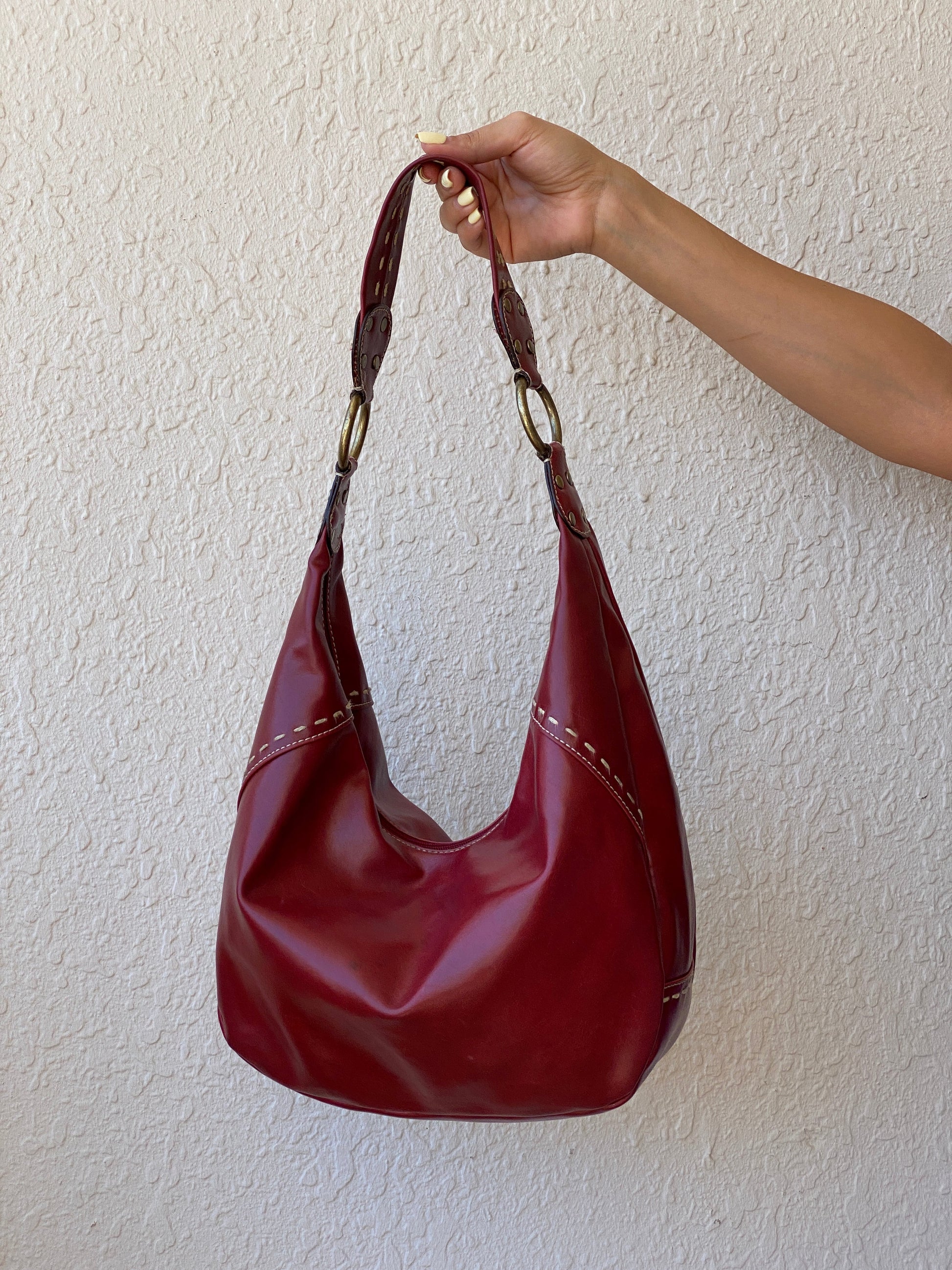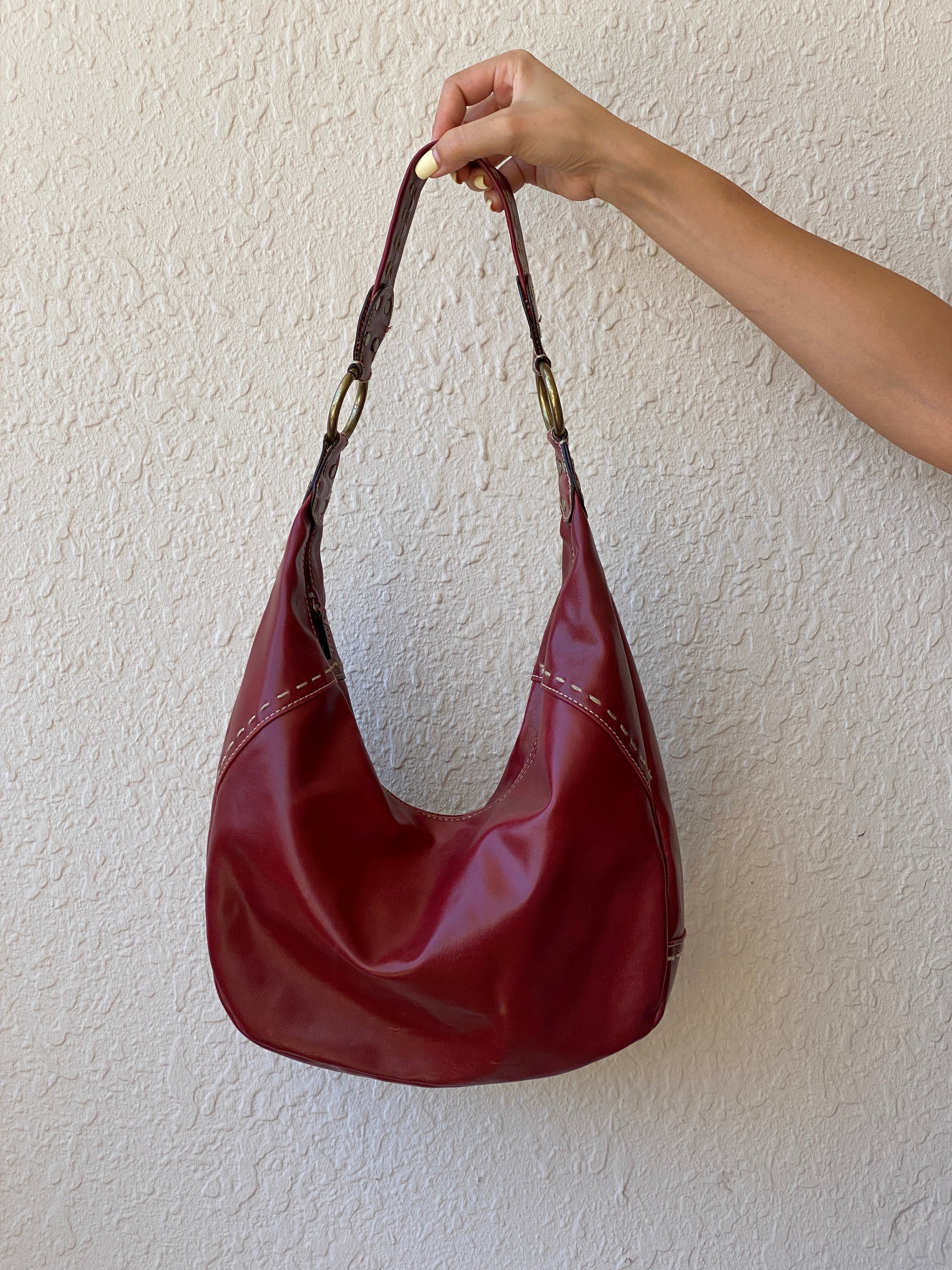 حقيبة كتف هووب من الجلد الصناعي الأحمر من ناين ويست Y2K
