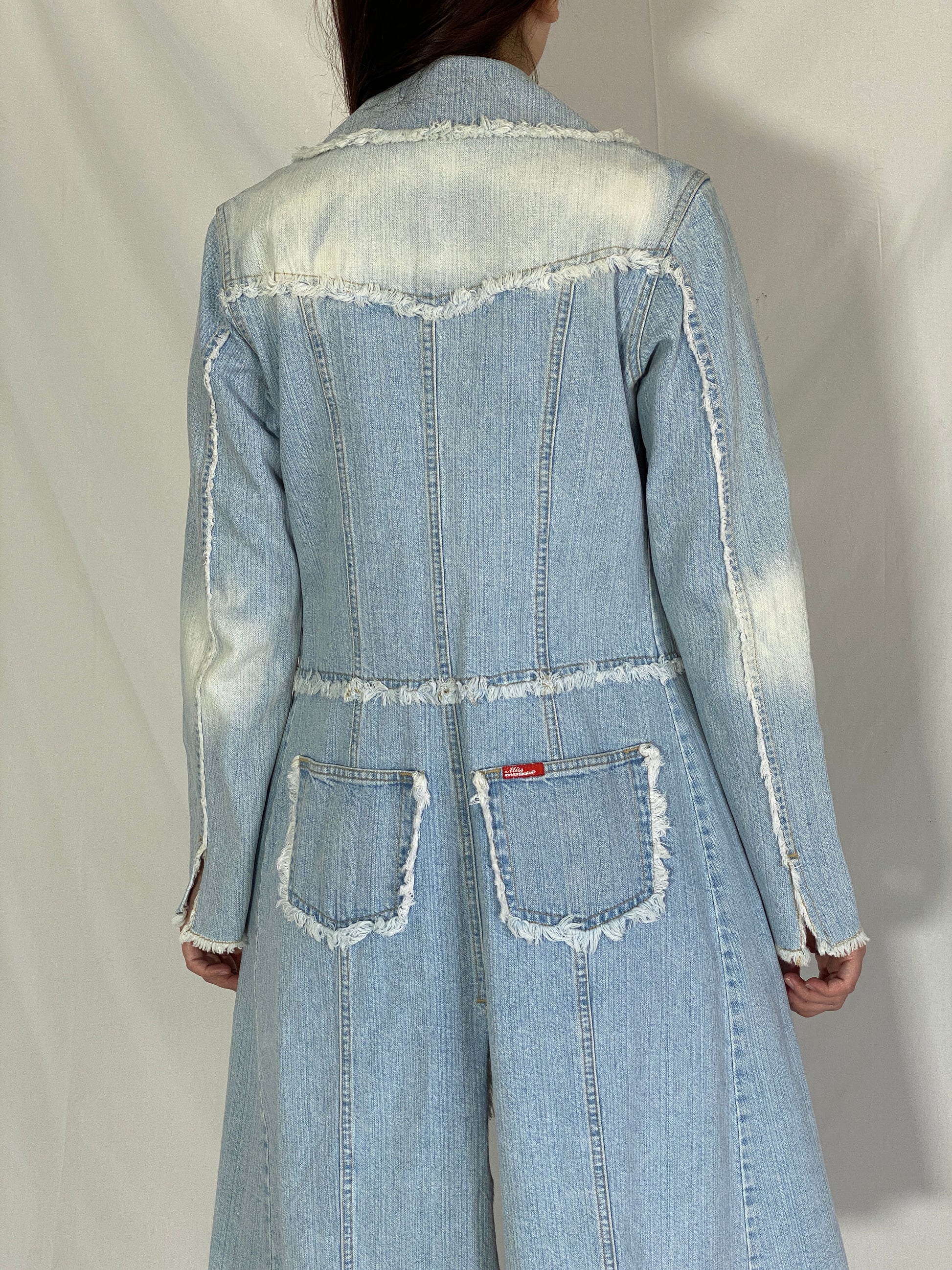 Miss Maggie denim coat, Italian denim trench, vintage denim long coat, Y2K denim jacket dress, 100% cotton denim coat, designer denim jacket Italy, women’s long denim trench, light wash denim coat