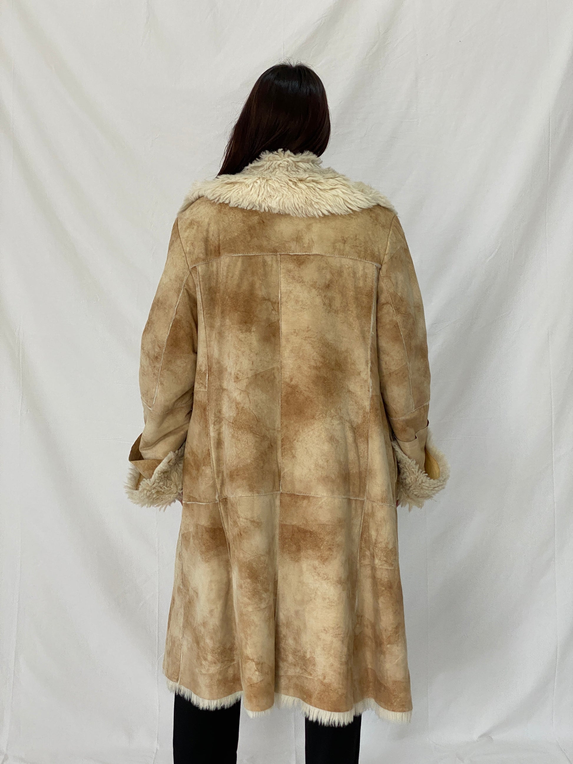 FREEHORN by Conbipel Faux Fur Lined Italian Genuine Leather Penny Lane Coat 70s Boho Jacket - XL
