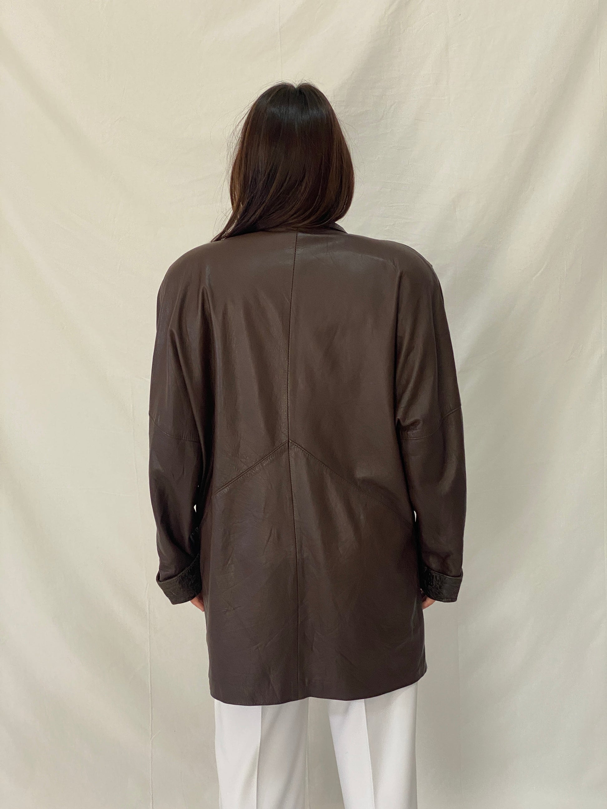 Vintage Brown Leather Coat, 1985 Vintage, Spanish Leather, Piel Ovino, Sheepskin Blazer, Creaciones Ponz, 80s Fashion, Oversized Leather, Embossed Leather, Leather Patchwork, Dark Academia, Luxury Vintage, Brown Leather Jacket