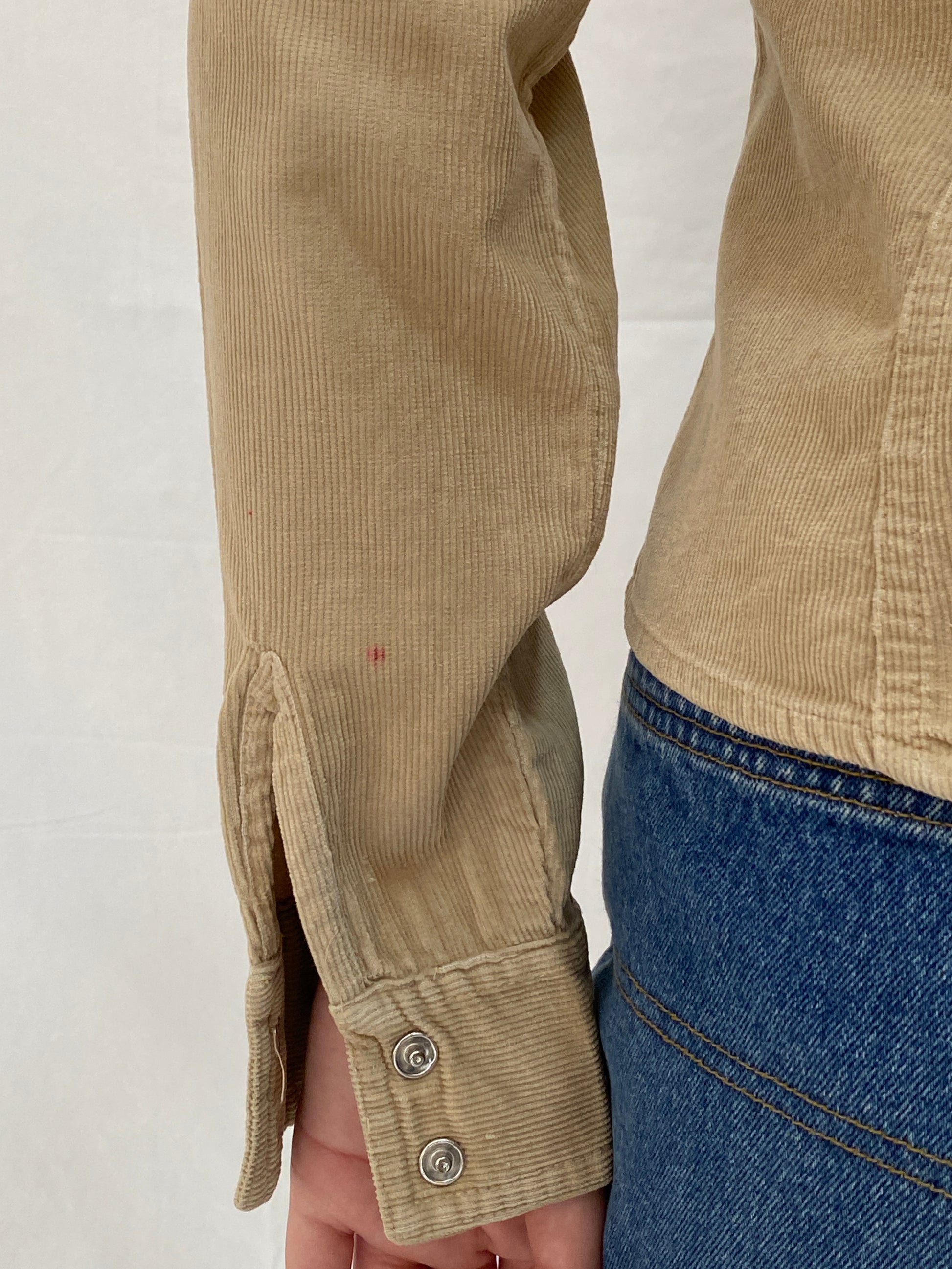 Vintage Y2K Periscope Tan Corduroy Western Full Sleeve Shirt - M