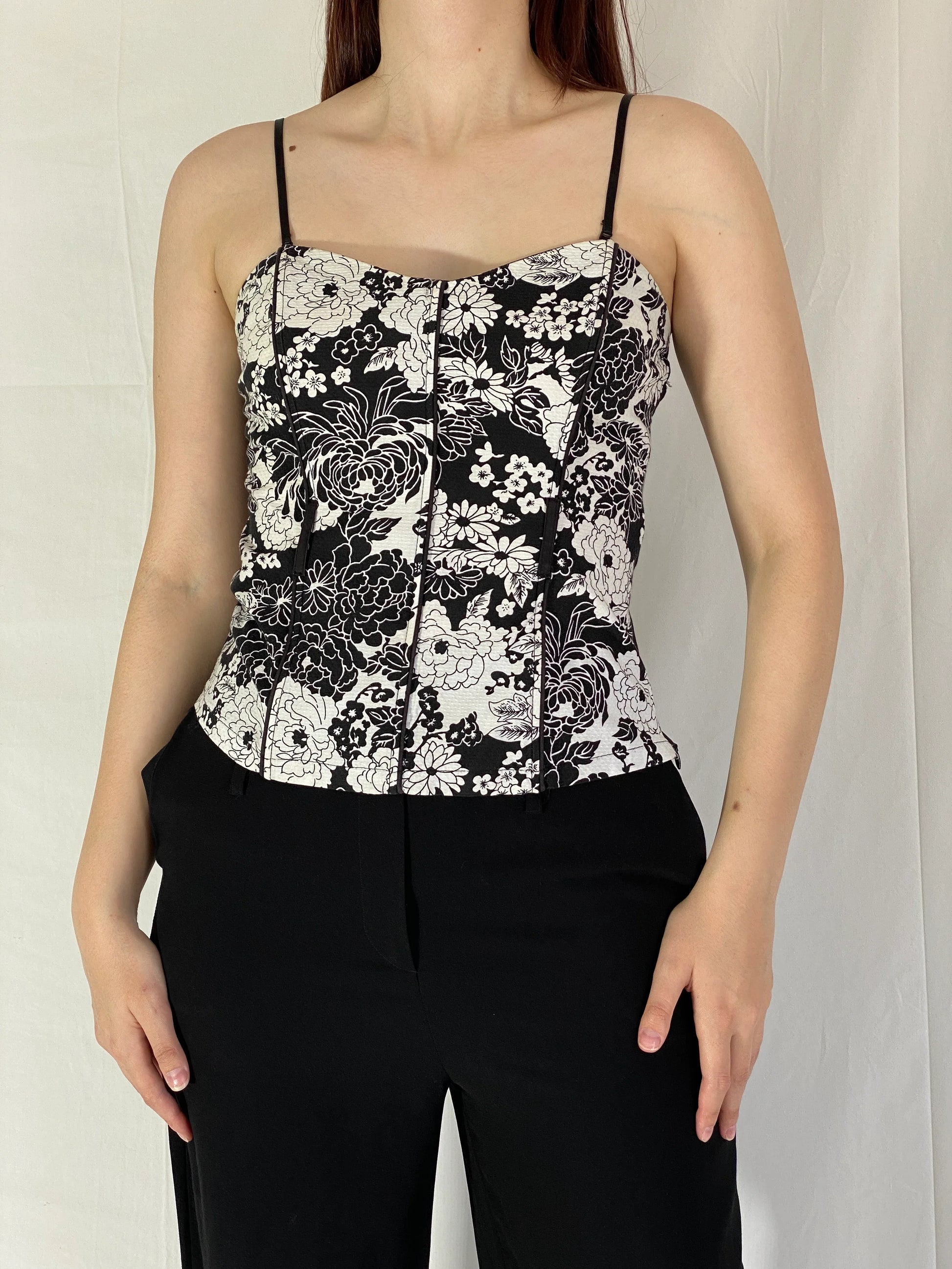 Vintage Y2K Xanaka Boned Corset Top Black & White Floral Bustier - S